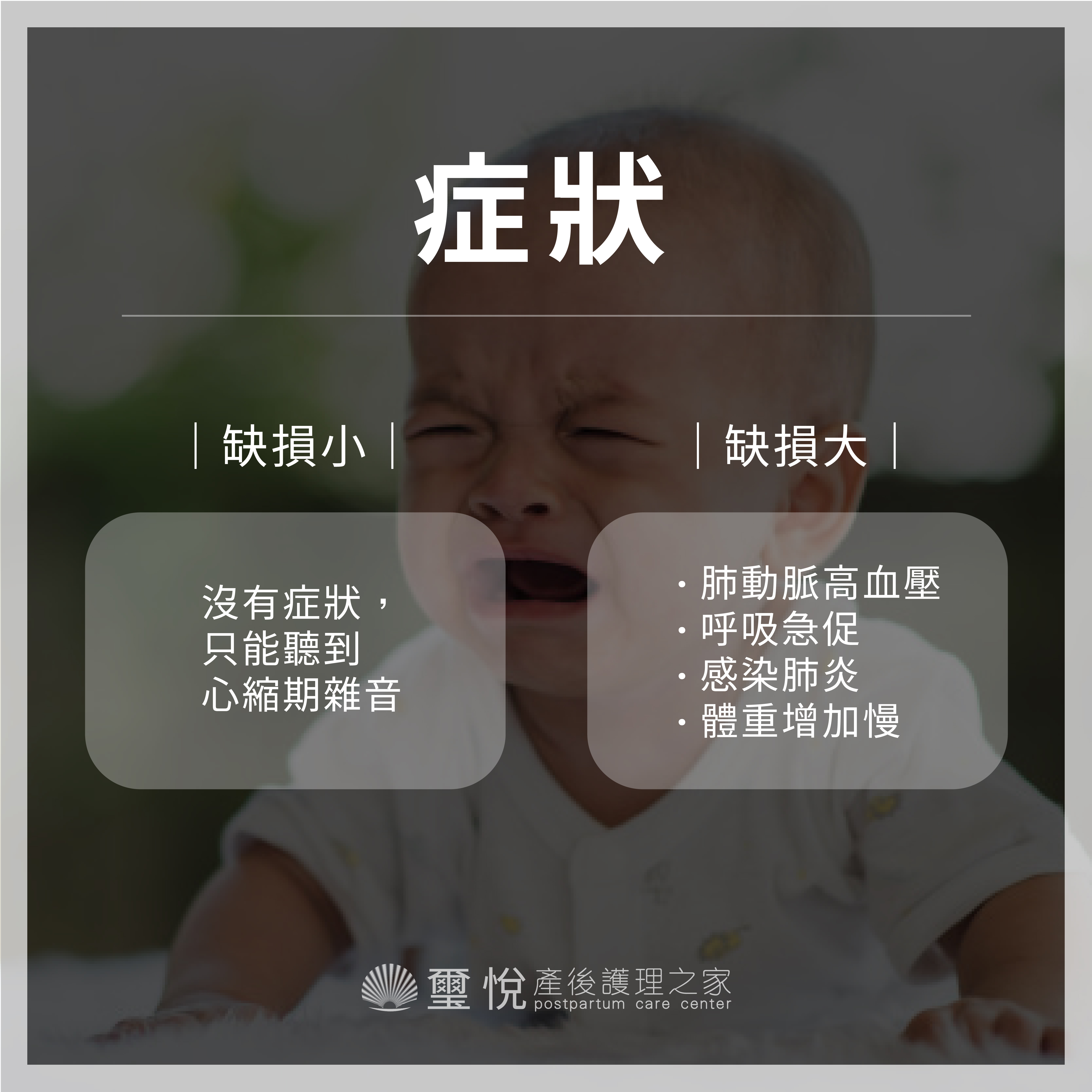 小破損可能毫無症狀;但中或大破損就得擔心哭鬧、餵食後心臟負荷增加。 而其中以第二型、第四型自然癒合機率最高!